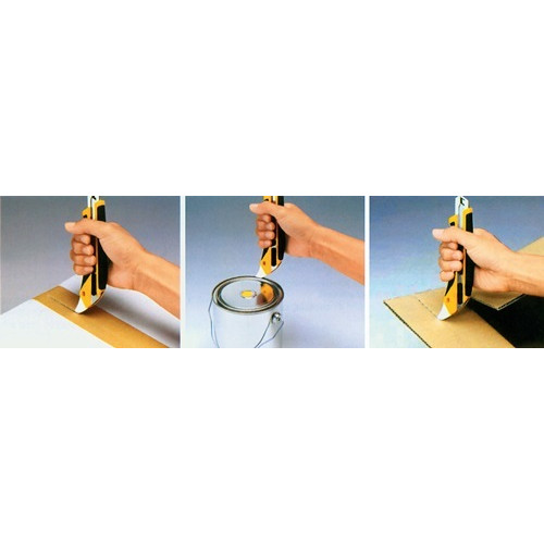 Met stalen geleiding, antislip rubber inzet en praktische verpakking- en verfblikopener Voorzien van zwart mes / ultra scherpOverige technische gegevens: Geleiding: Metaal Toebehoren: met 1 mes
