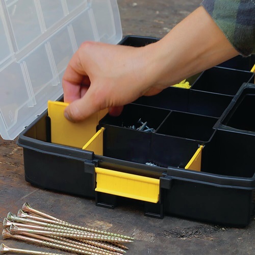 De binnenverdeler kan willekeurig worden aangepast Het deksel kan bovendien worden vergrendeld