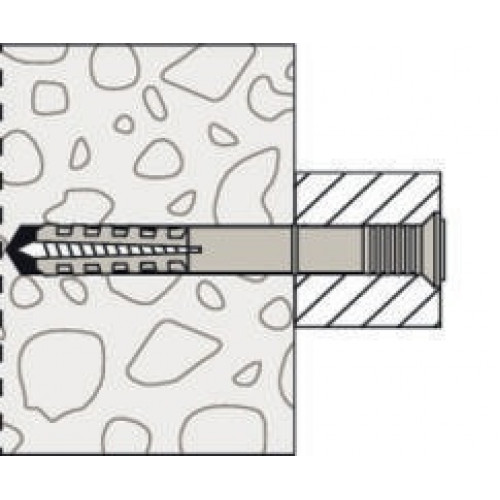 snelle slagmontage bespaart tijd geïntegreerde inslagbescherming voorkomt voortijdig spreiden van de plug schroefnagel met verzinkkopOverige technische gegevens: Type: N 6 x 80 S Schroefnagel ds x ls: 4 x 88mm Durchsteckmontage: Ja Effektive Verankerungstiefe: 30mm Farbe: grau Geeignet für Beton: Ja Geeignet für Gasbeton: Ja Geeignet für Kalksandstein: Ja Geeignet für Porenbeton: Ja Geeignet für Vollziegel: Ja Inhalt: 100 Marketingclaim: Der Schlagdübel für eine einfache, schnelle und wirtschaftliche Montage. Min. Bohrlochtiefe bei Durchsteckmontage: 95mm Profi / DIY: Profi/DIY Top Features: Schnelle Schlagmontage spart Zeit: ideal für Serienmontage. Einfache und sichere Montage: Integrierte Einschlagsperre verhindert ein vorzeitiges Aufspreizen des Dübels. Nachträgliche Demontage der Nagelschraube mit Kreuzschlitzaufnahme möglich. Mit Senkkopf. VDS-Zulassung: Ja Verpackungsvariante: Faltschachtel Vorteile: Die schnelle Schlagmontage reduziert den Arbeitsaufwand und ermöglicht eine wirtschaftliche Serienmontage. Die integrierte Einschlagsperre vermeidet das vorzeitige Aufspreizen (Verklemmen) des Dübels und sorgt für eine problemlose Montage. Das Gewinde der Nagelschraube in Verbindung mit der Kreuzschlitzaufnahme ermöglicht das Ausdrehen der Schraube und damit eine nachträgliche Demontage. Das breite Sortiment an Durchmessern und Nutzlängen bietet den richtigen Dübel für jede Befestigung.