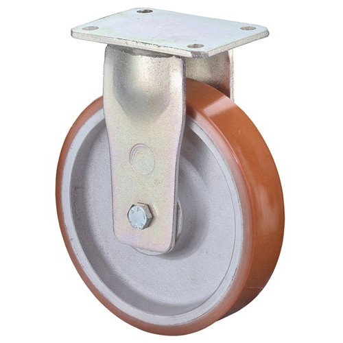 Zware transportmiddelwieltjes Zware staaldraadconstructie Verzinkt Slijtvast Wiel polyurethaancoating (bruin) op gegoten wielbehuizing, 95 +/- 3 Shore A Bestand tegen benzine, diesel, olie en plantaardige en dierlijke vetten Kogellager Met plaatbevestigingOverige technische gegevens: Schroefgat-Ø: 16mm Bevestigingswijze: Met bevestigingsplaat Schroefgatverwijdering: 160x120mm