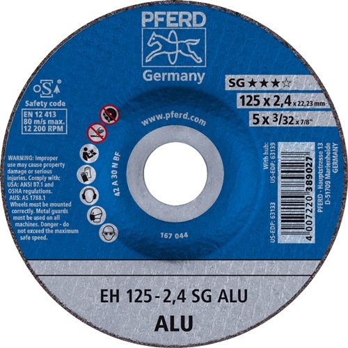 Doorslijpschijf SG aluminium D125x2,4mm gebogen aluminium gat 22,23 mm PFERD
