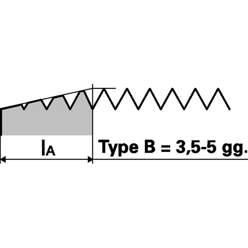 HSS-Co Vorm B Type RVS Genitreerd en gevaporiseerd Blauring Met rechte groef Zijden teruggeslepen Whitworth-pijpschroefdraad G Volgens DIN ISO 228 Voor doorlopende schroefdraad Voor moeilijk verspaanbare materialen, zoals roest-, zuur- en hittebestendige stalen van max. 1000 N/mm² vastheidOverige technische gegevens: Oppervlakkwaliteit: Gevaporiseerd Gg/1": 19 Schacht-Ø: 11mm