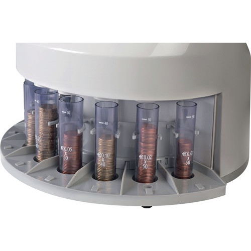In de grote trechter passen tot max. 500 munten, die met een snelheid van 220 munten per minuut worden geteld
